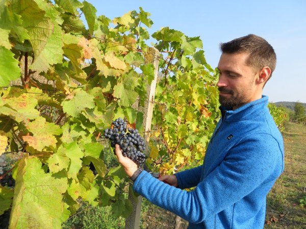 Všetky práce v našich vinohradoch počas celého roka robíme iba my dvaja s manželkou (a jeden traktor). Pomocníkov si voláme len v čase oberačiek.