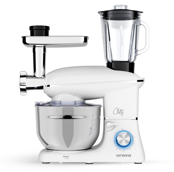 Varenie a pečenie je zábava, keď vo vašej kuchyni nechýba na slovo vzatý pomocník, ktorý sa nezastaví pred ničím a dokáže divy. Takým je horúca novinka z dielne slovenskej značky Orava – multifunkčný kuchynský robot Orava Chef-3. Miesi, mieša, šľahá, mixuje aj melie mäso, takže ťažkú prácu v kuchyni si odpracuje za vás. S príkonom 2 000 W a v šiestich rýchlostných stupňoch a režimom Pulse si to rozdá s potravinami od výmyslu sveta, aby z nich vyčaroval delikátne jedlo. Antikorová misa s objemom 5,5 litra a 1,5-litrová nádoba mixéra sú pripravené na rôzne kuchynské zadania. Ochotne vám pomôže s vymiesením ťažkého kysnutého cesta na domáci chlieb, ale aj s vyšľahaním jemného krému do parížskych rožkov. V mixéri, ktorý je jeho súčasťou, pripravíte s ľahkosťou majstra kuchára krémové polievky, omáčky, nátierky, mliečne koktaily, detskú výživu aj miešané drinky. V mlynčeku na mäso, ktorý k robotu patrí tiež, zas pomeliete mäso na fašírku aj domáci hamburger. Tento kuchynský robot je vyrobený z vysokokvalitných materiálov, aby vám verne slúžil dlhé roky. Stane sa vaším rodinným pokladom, ktorý sa bude u vás doma dediť.