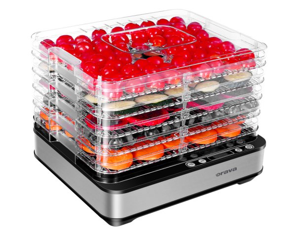Na domáce sušenie potravín v bio kvalite je ako stvorená digitálna sušička potravín Orava SU-106. V usušených kúskoch uchová vitamíny, minerály, stopové prvky aj vlákninu bez použitia chémie či konzervačných látok. K dispozícii má päť mriežok s možnosťou dokúpenia ďalších, dokopy sa ich dá na sušičke nastohovať na sušenie až desať. Umožňuje digitálne nastaviť čas a teplotu sušenia, pričom parametre sa dajú v procese sušenia kedykoľvek zmeniť. Čas sušenia sa môže pohybovať od polhodiny do 24 hodín, teplota sušenia môže byť od 35 do 70 0C. Hoci má sušička príkon 420 W, ani pri dlhodobom sušení vám tento šikovný elektrospotrebič nezruinuje rodinný rozpočet. V manuáli na používanie výrobku nájdete cenné rady, ako sa stať majstrom domáceho sušenia potravín.